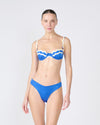 The Ola top features delicate white wave details along the neckline and thin wavy straps, bringing a fresh and unique style. Its light boning structure provides support and a natural lift.